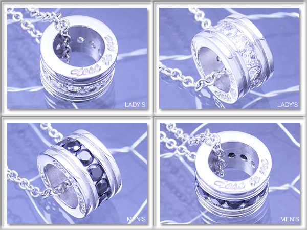 メンズペンダント:ブラックキュービックジルコニア (ブラック色) / レディースペンダント:ホワイトキュービックジルコニア (ホワイト色) |