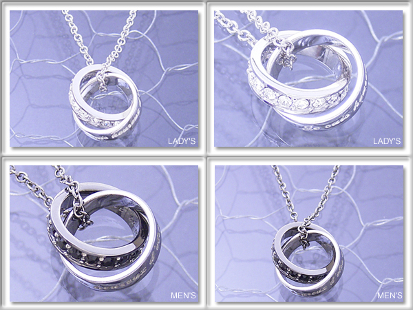 男女共に永遠の意味をこめたエタニティリングとフランス語のメッセージが刻まれたWリングのペアネックレス。 ペアアクセサリー&単品シルバーアクセサリー。 |