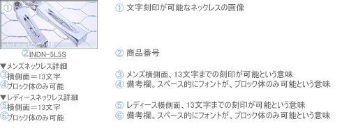 ▼文字刻印の可能な商品 - 文字刻印の可能なペアネックレスの一覧と文字数/刻印位置になります。 |